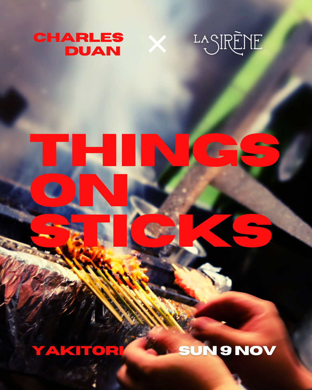 His high-concept pop-ups blend Mongolian, Northern Chinese, and modern Asian influences.With a one day only menu by Charles THINGS ON STICKS is desinged to mix, match and share. Perfect with a glass of La Sirène or two, this event will be a taste sensation!